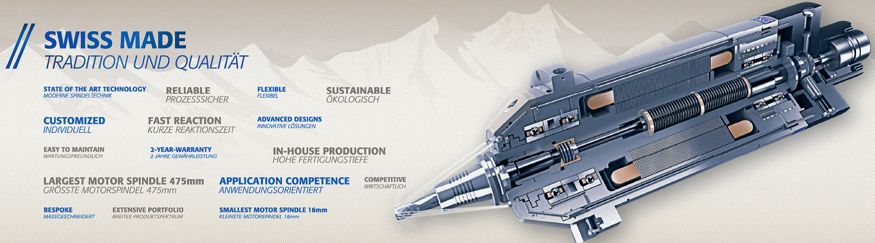 瑞士IBAG電主軸公司 成立于1941年2月,并于1960年開(kāi)始研發(fā)電主軸。到目前,瑞士IBAG電主軸已成為業(yè)界影響深遠(yuǎn)、廣為推崇的電主軸品牌。作為最早進(jìn)入中國(guó)市場(chǎng)的電主軸品牌,憑借優(yōu)良的品質(zhì)、優(yōu)美的外觀,簡(jiǎn)潔可靠的結(jié)構(gòu)設(shè)計(jì),IBAG電主軸不僅為中國(guó)高端制造提供了高端電主軸選擇,同時(shí)也為國(guó)內(nèi)電主軸生產(chǎn)企業(yè)起到了模范作用,促進(jìn)了國(guó)內(nèi)電主軸行業(yè)最初的發(fā)展。瑞士IBAG電主軸公司多年僅聚焦于電主軸的研發(fā)和生產(chǎn),電主軸產(chǎn)品應(yīng)用領(lǐng)域廣泛,如微孔加工、精密雕刻、鏡面加工、鉆攻、各式加工中心、雙軸擺頭等,瑞士IBAG電...